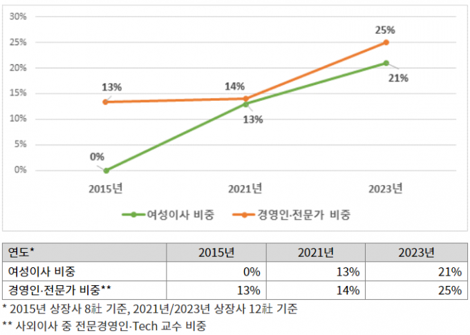 전∙현직 기업인 출신 사외이사도 14명으로 늘어난다. 전체 사외이사 중 25%로 전년보다 10%포인트 높아진다.