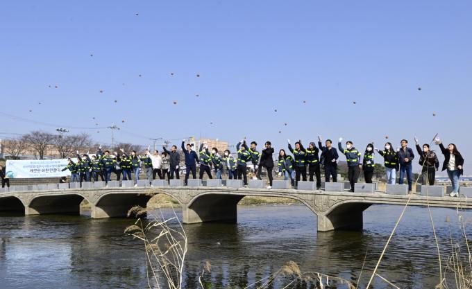 오비맥주는 매년 3월 청주, 광주, 이천 3개 공장 인근 하천 일대에서 환경 정화 활동을 펼치고 있다. 올해는 조깅을 하며 쓰레기를 줍는 플로깅(쓰레기를 주우며 조깅하기)에 더해 'EM 흙공 던지기'를 진행했다.