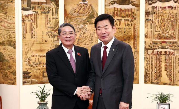 ▲ 김진표 국회의장이 지난 21일 국회 집무실에서 응우옌 득 하이 베트남 국회부의장을 접견하고 있다. [국회 제공]