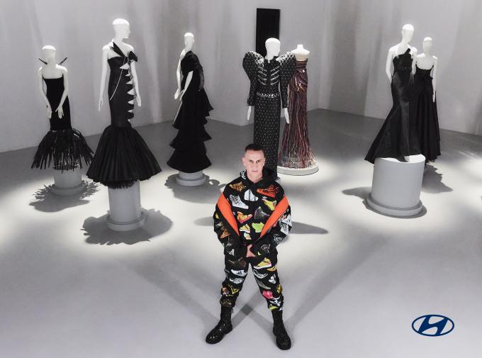 ▲ '2023 리스타일 컬렉션' 앞에서 포즈를 잡고 있는 제레미 스캇(Jeremy Scott)[현대자동차 제공]