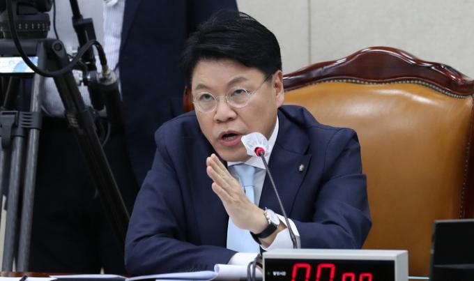 ▲ 지난 22일 국회 행정안전위 전체회의에서 위원장인 국민의힘 장제원 의원이 발언하고 있다. [뉴시스]