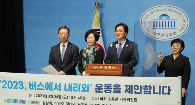 김상희·우원식·정성호 의원은 24일 기자회견을 열고 '단결과 총선 승리를 위한 2023, 버스에서 내려와' 캠페인을 제안했다.