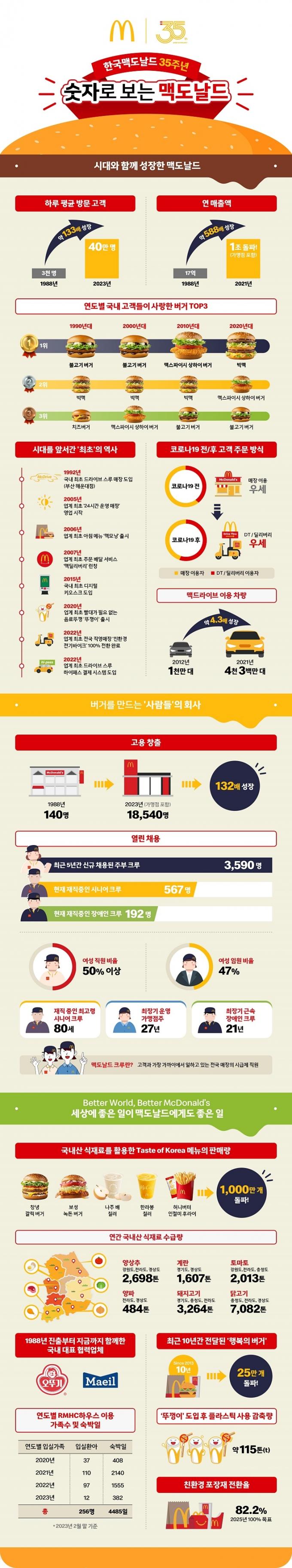 1988년 일 평균 3000명이 방문하던 맥도날드는 지난 2021년 기준 하루 약 40만 명이 찾고 있다. 1초당 약 4.6명의 고객이 맥도날드를 방문한 셈이다. 매출도 진출 당시 17억 원 수준에서 1조 원 이상으로 성장해 퀵서비스 레스토랑(QSR) 업계 1위 브랜드가 됐다.