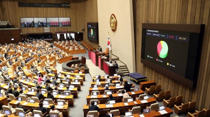 169석의 민주당은 자율 투표로 임했다. 표결 결과를 보면 민주당이 최소한 수십표의 찬성표를 던진 것으로 보인다. 국민의힘은 이날 104명이 표결에 참석했다고 밝혔다. 산술적으로 최소한 50명 이상의 민주당 의원들도 찬성에 가세한 것으로 풀이된다.