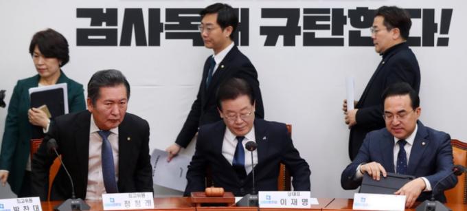 ▲ 더불어민주당 이재명 대표를 비롯한 지도부가 지난달 27일 오전 서울 여의도 국회에서 열린 최고위원회의에 참석하고 있다. [뉴시스]
