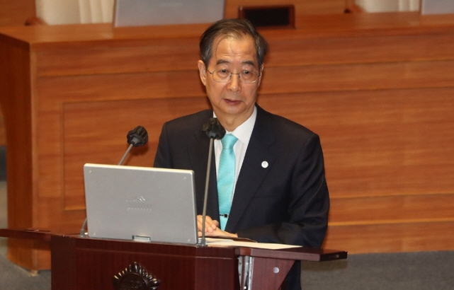 ▲ 한덕수 국무총리가 3일 오후 진행된 국회 대정부질문에서 국회의원들의 질문에 답하고 있다. [뉴시스]