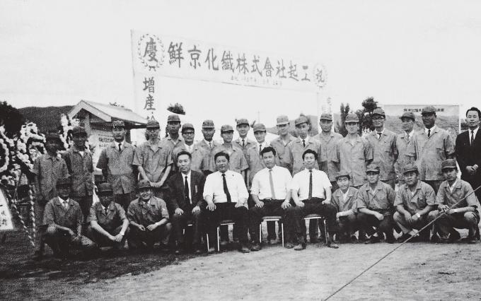 ▲ 1967년 아세테이트 공장 기공식에서 최종건 창업회장(왼쪽에서 5번째)과 최종현 선대회장(6번째). [SK그룹 제공]