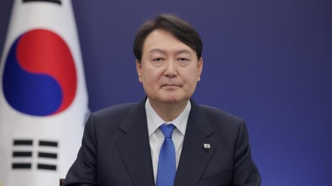 ▲ 윤석열 대통령이 지난 20일 서울 용산 대통령실 청사에서 조 바이든 미국 대통령이 개최한 '에너지와 기후에 관한 주요경제국포럼(MEF) 정상회의'에 영상으로 참석하고 있다. [대통령실 제공]