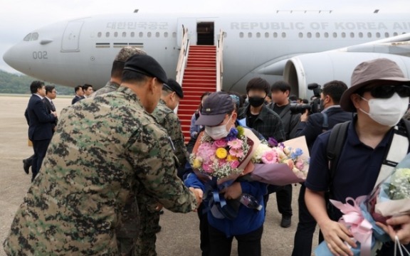 공항에서는 이종섭 국방부장관, 이도훈 외교부2차관 등이 직접 교민들을 맞이했다. 교민들은 준비된 꽃다발을 주고받고 마중나온 가족들과 포옹하며 귀국의 감격을 만끽했다.