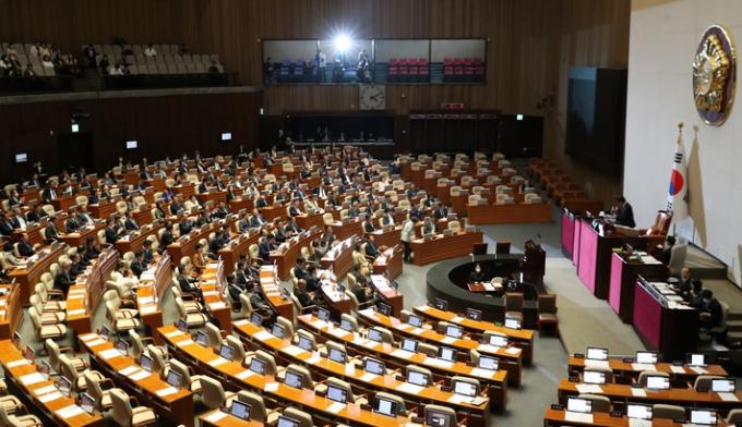 국민의힘은 반대 토론을 한 뒤 항의 표시로 본회의장을 퇴장해 표결에 불참했다.