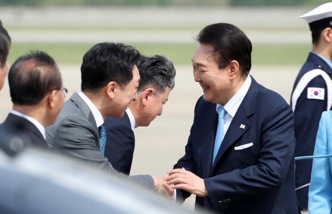국민의힘은 이날 윤 대통령 귀국에 맞춰 '워싱턴 선언' 등을 집중 부각하며 '방미 성과 띄우기'에 나섰다. 정부도 보조를 맞췄다. 윤 대통령은 이날 오후 경기 성남 서울공항을 통해 귀국했다.