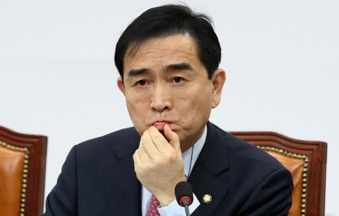 ▲ 국민의힘 태영호 최고위원이 지난달 27일 국회에서 열린 최고위원회의에서 생각에 잠겨 있다. [뉴시스]