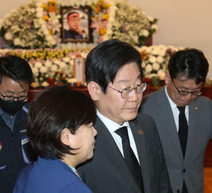 이 대표는 이날 서울 종로구 서울대병원 장례식장에서 민주노총 건설노조 강원건설지부 고(故) 양회동 지대장의 빈소를 조문한 뒤 기자들과 만나 "어떻게든 대화와 정치를 복원해 이 어려운 민생 경제, 안보 위기의 극단적 갈등의 골을 넘어가길 바란다"고 말했다.