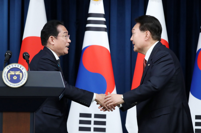 기시다 총리도 "3월에 큰 한 걸음을 내디딘 일한관계 개선의 움직임이 본궤도에 오른 것을 확인했다"고 화답했다.