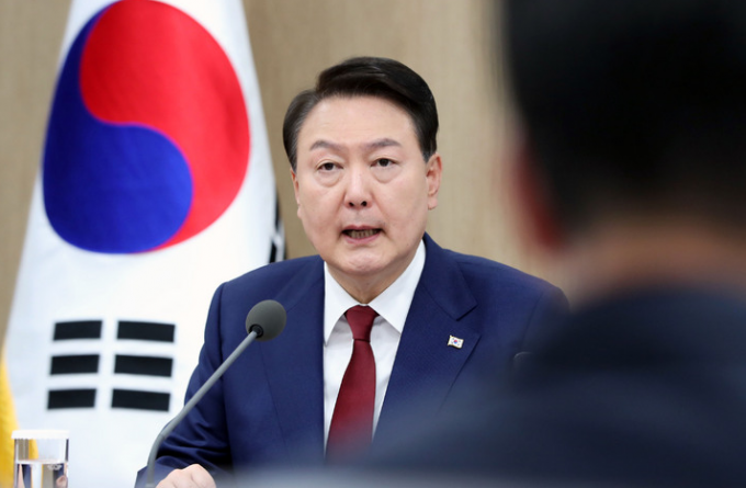 ▲ 윤석열 대통령이 취임 1주년을 하루 앞둔 9일 서울 용산 대통령실 청사에서 국무회의를 주재하며 국정 운영에 대한 소회를 밝히고 있다. [뉴시스]