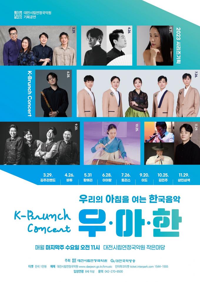 K-브런치콘서트 은 전통음악 인프라 확충과 국악의 대중화, 생활화를 위해 국내외 연주자들과 함께 클래식, 재즈 등 다양한 장르와의 경계를 넘나드는 음악으로 국악 중심의 동시대 최고의 한국창작음악을 선사하고 있다.