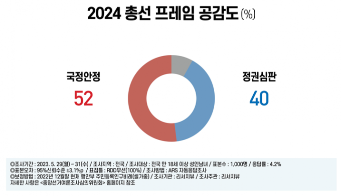 총선프레임 공감도 국정안정 52% vs 정권심판 40%