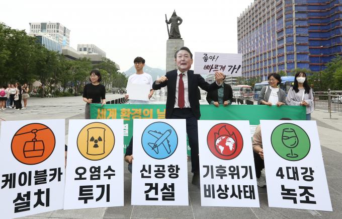 환경운동연합은 "세계 환경의 날이 무색하게도 윤석열 정부는 케이블카, 공항 건설, 녹조 방치, 오염수 투기 찬성, 기후위기 방치 등 반환경적 행보를 이어가고 있다"며 "세계 환경의 날을 맞아 윤석열 정부의 환경 파괴 폭주 중단을 요구하는 기자회견을 진행하게 되었다"고 밝혔다.