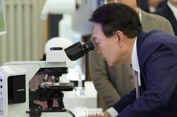 윤 대통령은 "첨단과학기술을 육성할 때 '국가주의'보다 '국제주의'로 접근해 세계 최고의 과학자, 연구자, 기술자들과 함께 서로 동료처럼 연구해 나가는 분위기를 만들어 나가는게 필요하다"고 말했다.