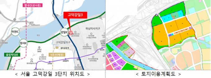 서울 도심에 위치한 고덕강일 3단지는 북쪽에 한강, 남쪽에 망월천, 인근에 고덕수변생태공원·미사한강공원 등이 있어 주변환경이 쾌적하다. 유치원과 초·중학교도 가깝다. 주변에 올림픽대로·서울외곽순환도로·강변북로·서울양양고속도로 등과 강일·상일동역(지하철 5호선)이 있다. 또한 지하철 9호선 연장이 계획돼 있다.