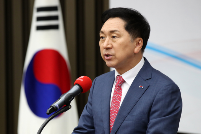 ▲ 국민의힘 김기현 대표가 9일 국회에서 열린 제7차 전국위원회에서 인사말을 하고 있다. [뉴시스]