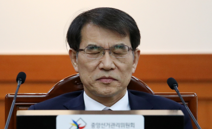 ▲ 중앙선관위 노태악 위원장이 9일 오후 경기도 과천시 선관위에서 열린 고위직 간부 자녀 특혜 채용 의혹 관련 위원회의에서 피곤한 듯 눈을 감고 있다. [뉴시스]