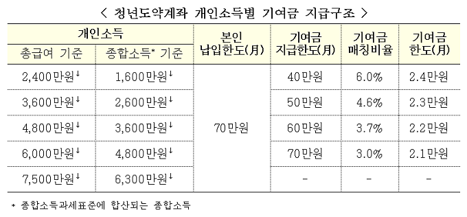 청년도약계좌 가입자의 개인소득은 가입일로부터 1년을 주기로 현행화해 기여금 지급여부와 규모를 조정할 계획이다.