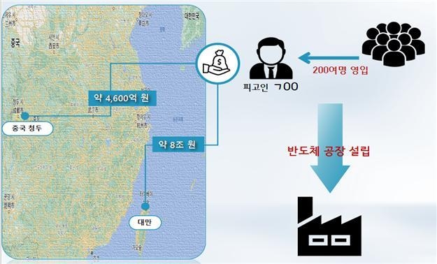 삼성전자에서 18년간 반도체 분야 상무로 근무했던 A 씨는 대만의 전자제품 생산·판매업체인 B 회사로부터 투자받아 중국 시안에 반도체 공장 건설을 추진했다고 검찰은 밝혔다.