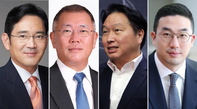 ▲ (왼쪽부터) 이재용 삼성전자 회장, 정의선 현대차그룹 회장, 최태원 SK 회장, 구광모 LG 회장. [사진 각사 제공]