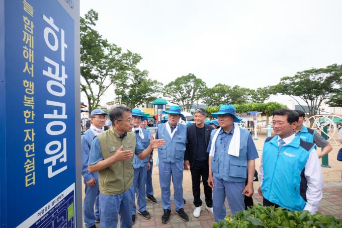 최 회장은 정인화 광양시장과 함께 광양제철소 건설 당시 이주민들이 정착한 광양 광영동 하광마을을 찾아 '체인지 마이 타운'(Change My Town) 캠페인 활동 중인 봉사단원들을 격려했다. 이들과 봉사활동에도 참여해 포스코그룹과 광양의 상생 의지를 다졌다.
