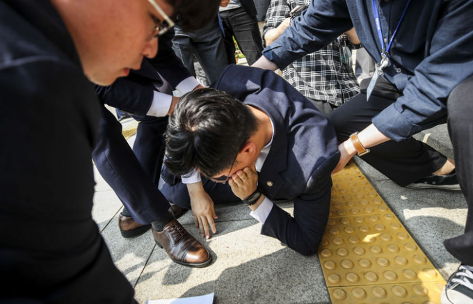 조 의원은 취재진 앞에서 항의 성명을 읽어 내려갔고 장 의원은 그 옆에 나란히 서 있었다. 그러다 돌연 기침을 하며 몸을 앞으로 수그리더니 그대로 바닥으로 쓰러졌다. 장 의원은 턱에 경미한 상처를 입었다.