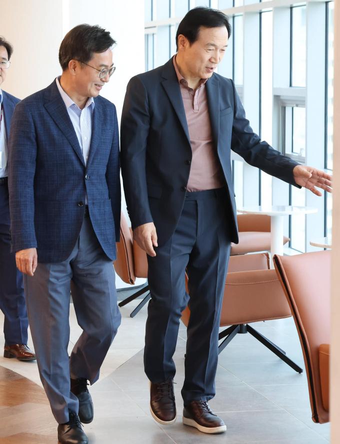 임태희 교육감은 16일 페이스북에 "광교 신청사 이전으로 이웃사촌이 된 김동연 경기도지사님을 만나 뵙고, 경기도교육청을 둘러보았다"고 적었다.