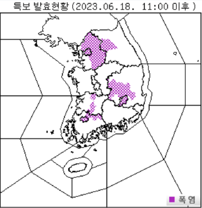 ▲기상특보 발효현황. [기상청 제공]