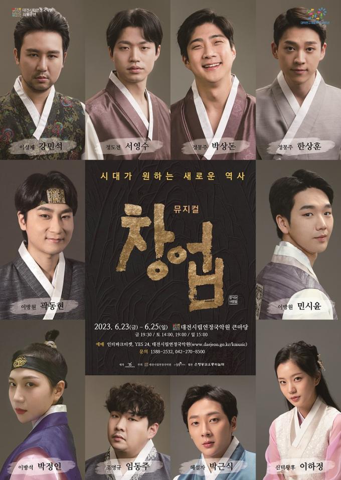 대전공연에 팬텀싱어 스타 박상돈, 곽동현 등 감동의 무대 대전시립연정국악원은 고려말 나라를 새롭게 바꾸고자 하는 두 가치관의 대립을 그린 기획공연 퓨전 사극 창작 뮤지컬 '창업'을 23일부터 25일까지 국악원 큰마당에서 개최한다.