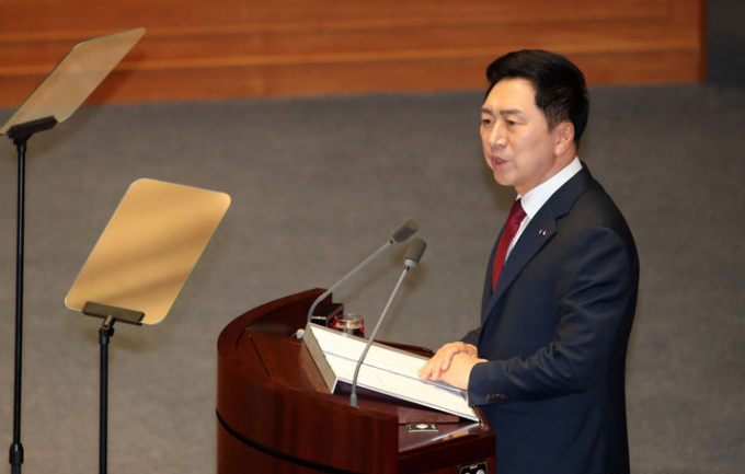 김 대표는 이날 연설에서 작심한 듯 '이재명 때리기'를 이어갔다. 이 대표가 전날 교섭단체 연설에서 윤석열 정부를 맹비난하자 강하게 반격한 것이다.
