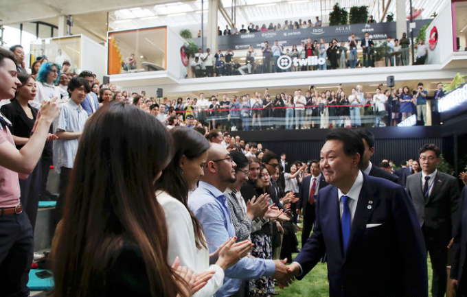 윤 대통령은 "외국 청년이 한국에서 원활히 창업하고 한국 청년들이 해외로 많이 진출할 수 있도록 스타트업 지원을 한국 국내 활동에 한정하지 않고 지원하겠다"고 밝혔다.