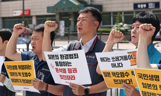 오전 10시에는 민노총이 주최하는 '일본 핵 오염수 해양투기 저지 투쟁 선포 민주노총 전국동시다발 기자회견'이 열렸다.