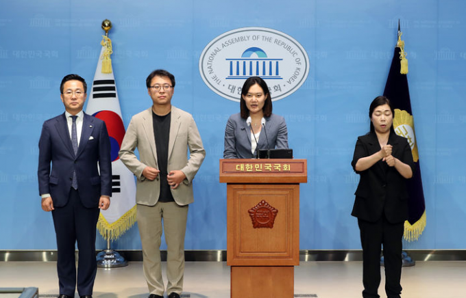 ▲ 더불어민주당 '김은경혁신위'의 김남희 대변인이 23일 국회 소통관에서 혁신위 2차 회의 결과를 브리핑하고 있다. [뉴시스]