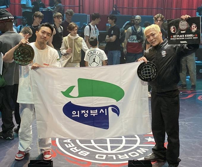 김종호·배영수 선수, 2대2 네덜란드 비보이 메이저대회 역전 우승 의정부시 비보이단 소속 김종호·배영수 선수가 지난 25일 네덜란드 아인트호벤에서 개최된 2대2 비보이 메이저대회인 '2023 World Breaking Classic(WBC)'에서 우승했다.