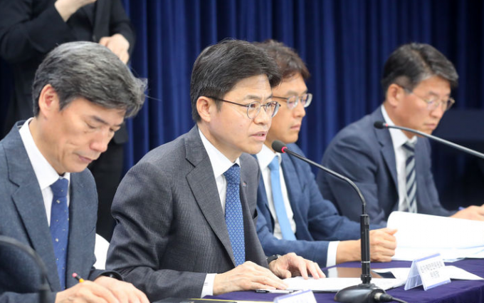 ▲ 유국희 원자력안전위원장(왼쪽 두번째)이 27일 서울 종로구 정부서울청사에서 일본 후쿠시마 오염수 방류 관련 일일 브리핑을 하고 있다. [뉴시스]