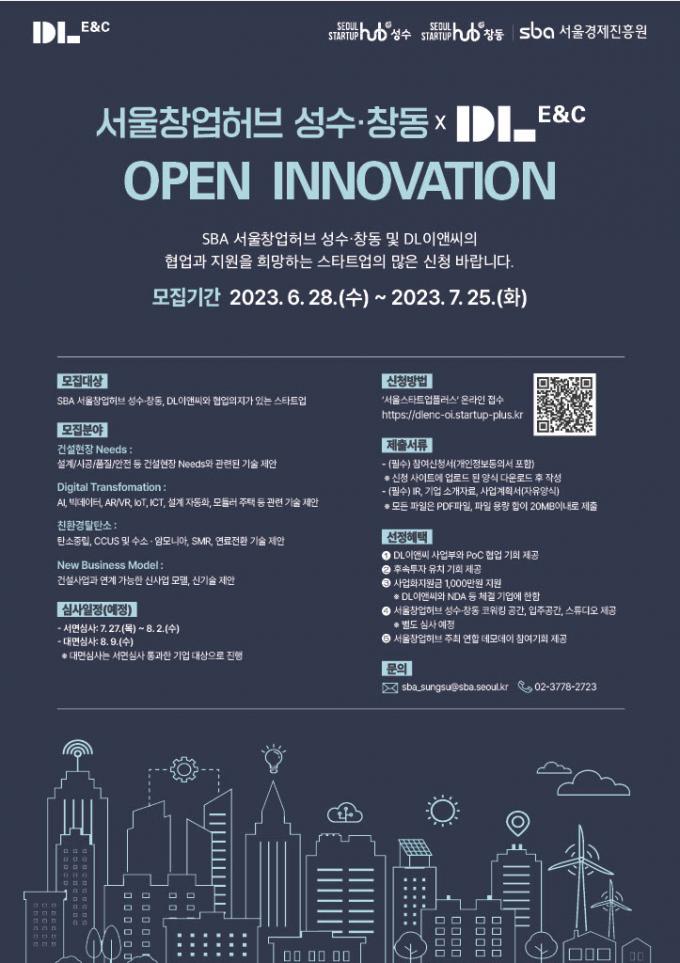 DL이앤씨는 서울시 출연기관인 서울경제진흥원에서 운영하는 서울창업허브 성수·창동과 함께 오픈 이노베이션(개방형 기술혁신) 프로그램을 진행한다.