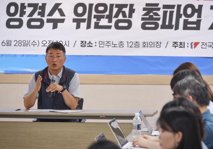 이어 "전두환 정권이 하나회를 통해 정권을 장악했듯이 윤석열 정권은 검찰을 통해 정권을 장악하고 위협·협박 정치를 하고 있다"며 "지배 권력에 의해 민주주의가 퇴색하는 상황에서 우리가 꺼내 들 수 있는 카드는 총파업이라는 가장 위력적인 무기뿐"이라고 주장했다.