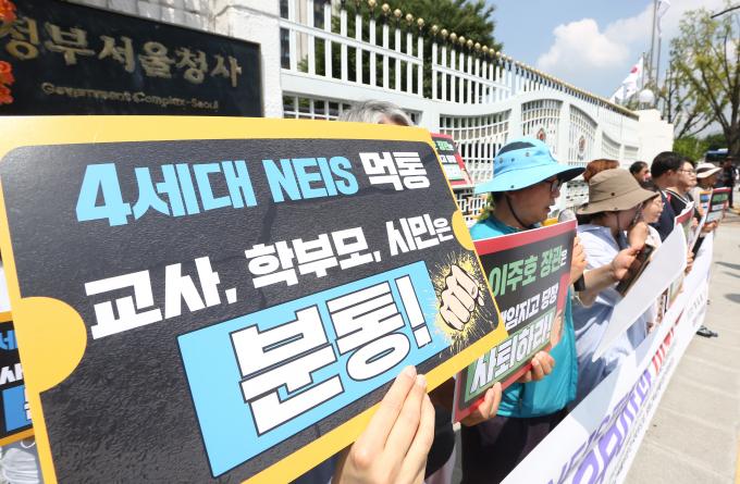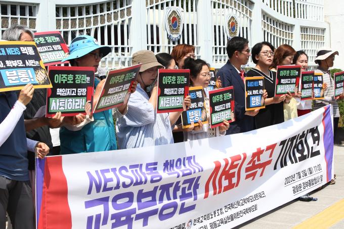 기자회견 참석자들은 "4세대 지능형 NEIS 오류 사태로 전국의 학교가 마비되고 학생과 학부모가 불안해하고 있지만 교육부는 제대로 된 실태 조사는커녕 사태를 축소해 발표하고 대책을 내놓지 못하고 있다"며 "교육주체들은 학생들의 생기부가 뒤섞여 성적 처리는 물론 대학입시에도 영향을 끼치는 게 아닌지 걱정된다"고 우려했다.