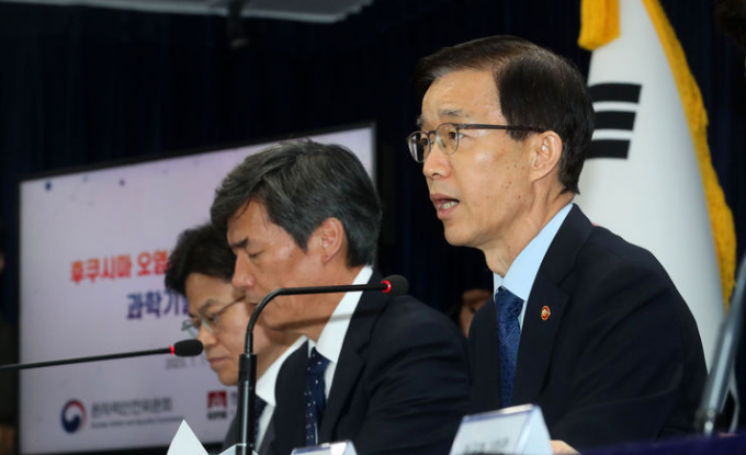 방 실장은 "정부가 지금까지 제시된 일본 측의 오염수 처리계획을 검토한 결과 일본의 계획은 방사성 물질의 총 농도가 해양 배출기준(고시농도비 총합 1 미만)을 충족한다"고 말했다.