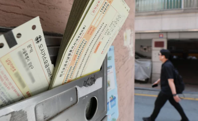 ▲ 서울 시내 주택밀집지역 우편함에 꽃혀있는 도시가스와 전기요금 고지서. [뉴시스]