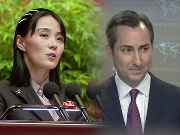 ▲ 김여정 북한 노동당 부부장(왼쪽)과 매슈 밀러 미국 국무부 대변인 [조선중앙TV·국무부 유튜브 캡처]