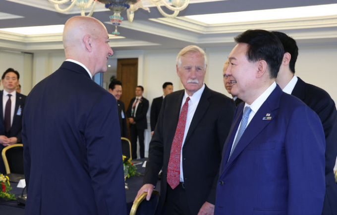 윤 대통령은 앞서 이날 오전 빌뉴스의 한 호텔에서 리투아니아 방문 첫 일정으로 미국 상원의원 대표단을 접견해 한미동맹 발전을 확인했다.