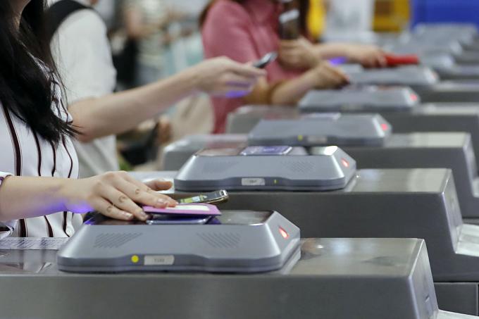 ▲서울 지하철역에서 시민들이 승차를 위해 카드를 찍는 모습. [뉴시스]
