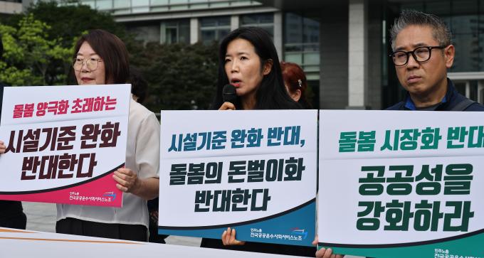또한 "대기업만이 아니라 소규모 자본의 요양서비스 진출을 가속화시켜 돌봄의 공공성을 훼손하고 이윤추구로 인해 서비스 질 저하와 돌봄노동자 고용의 질 저하로 이어질 것이 뻔하다"고 보건복지부를 규탄했다.