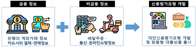 민간기업이 데이터전문기관으로 다수 참여하는 만큼 민간 데이터 개방을 포함해 다분야·이종데이터 결합이 크게 활성화될 것으로 기대된다. 구체적으로 은행, 카드사 등의 금융정보(계좌거래정보, 결제정보 등)와 비금융정보(배달플랫폼·온라인쇼핑 주문 내역 등)가 결합돼 대안신용평가모형이 고도화되고 맞춤형 금융 상품이 출시돼 소비자 편익이 증진된다.